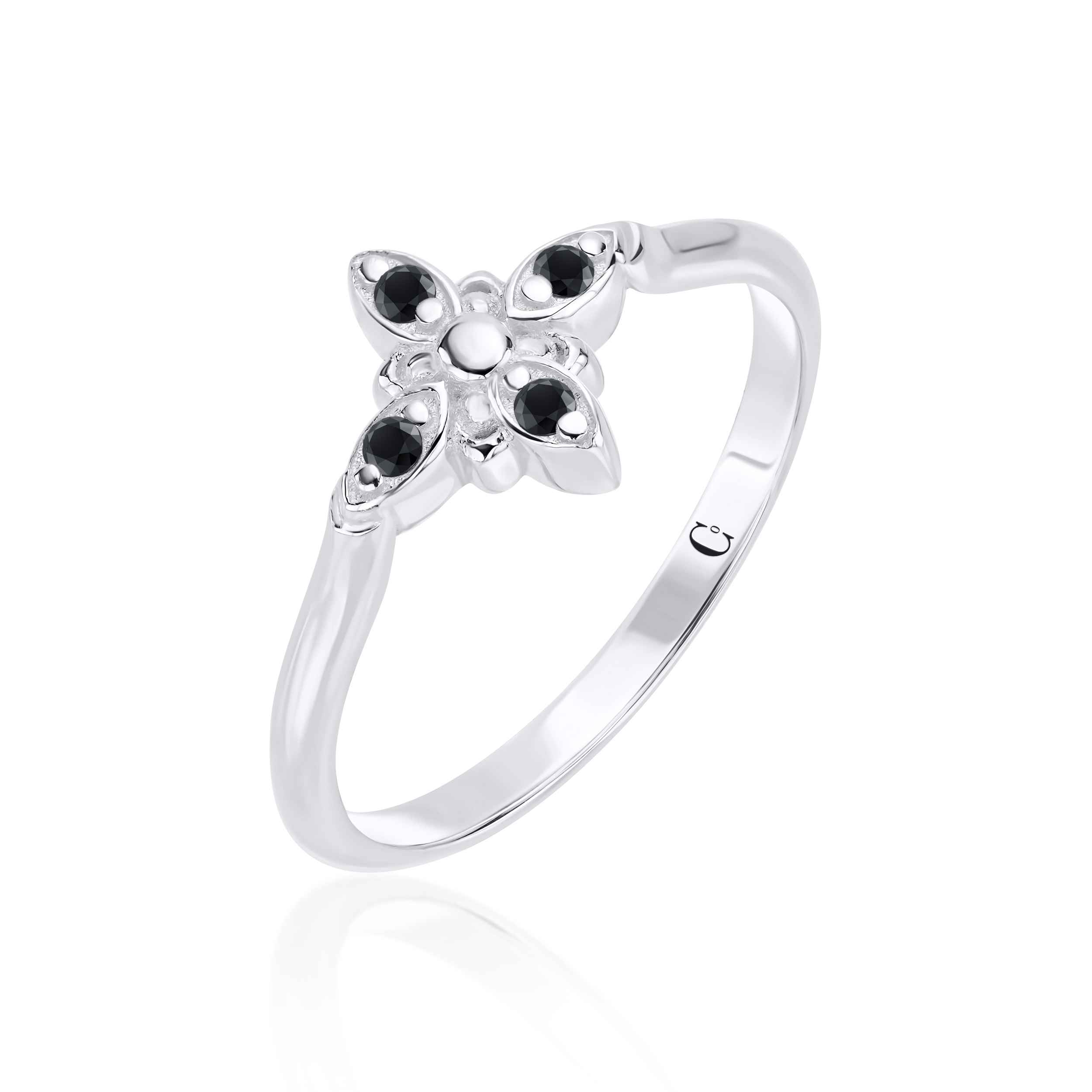 Emma ring made of 14K gold set with black diamonds.