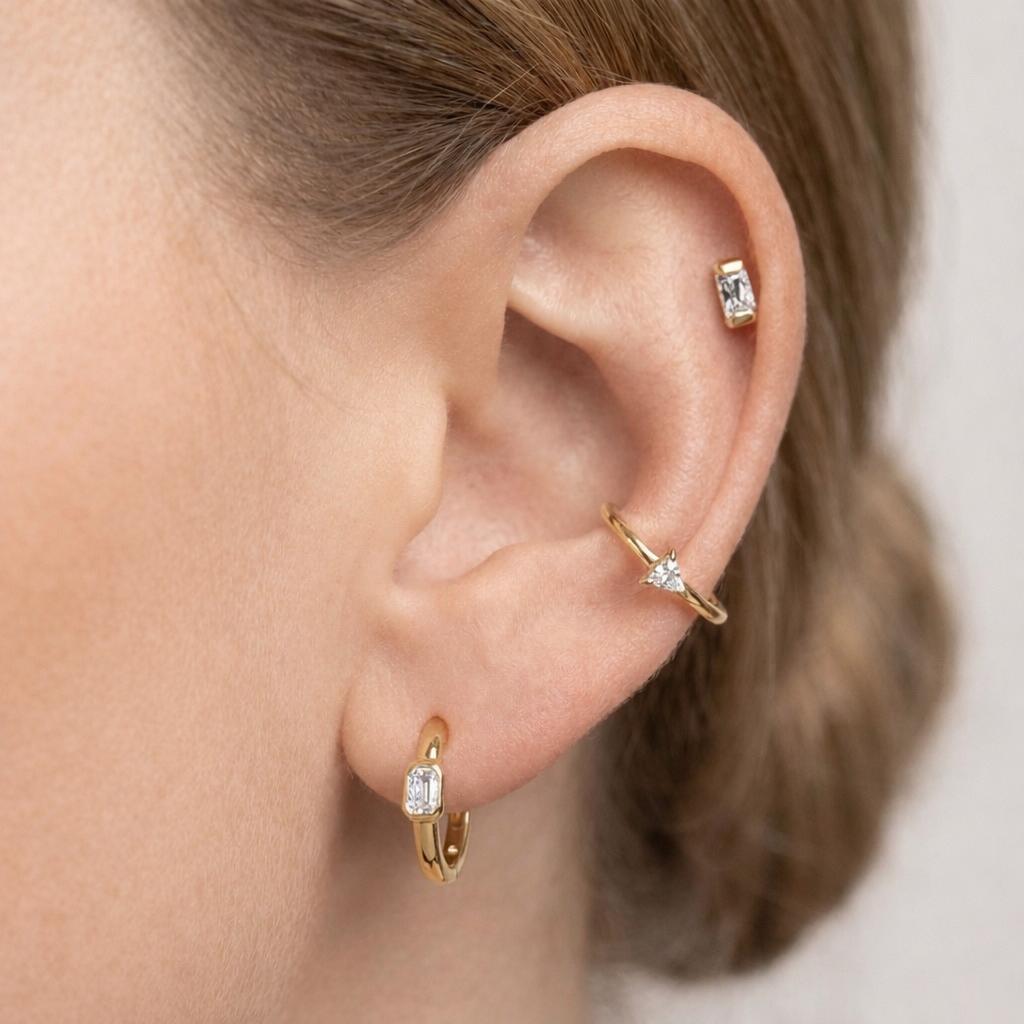 Hoop earrings made of 14 karat gold and emerald-cut diamonds
