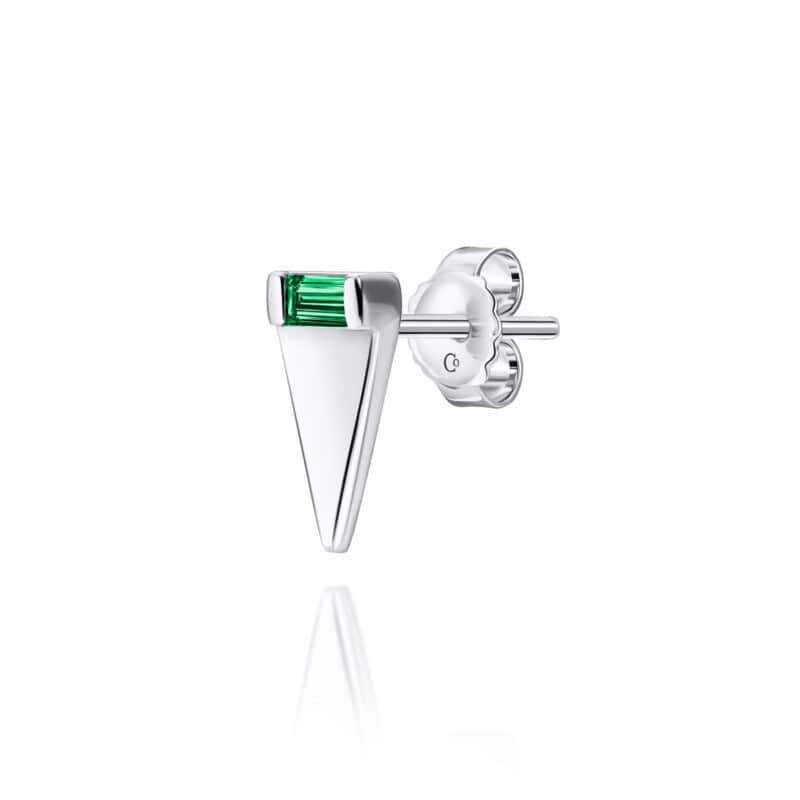 A pointed triangle–shaped earring with a gemstone set at its top.