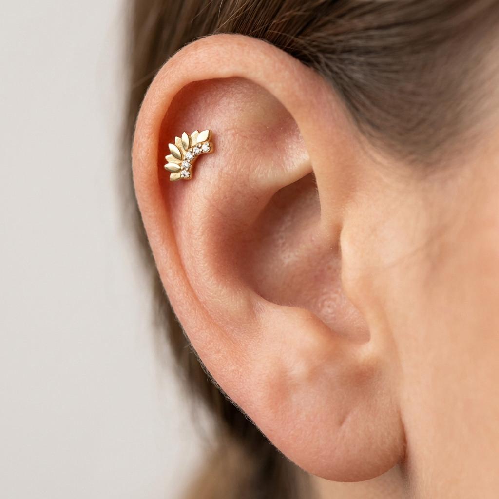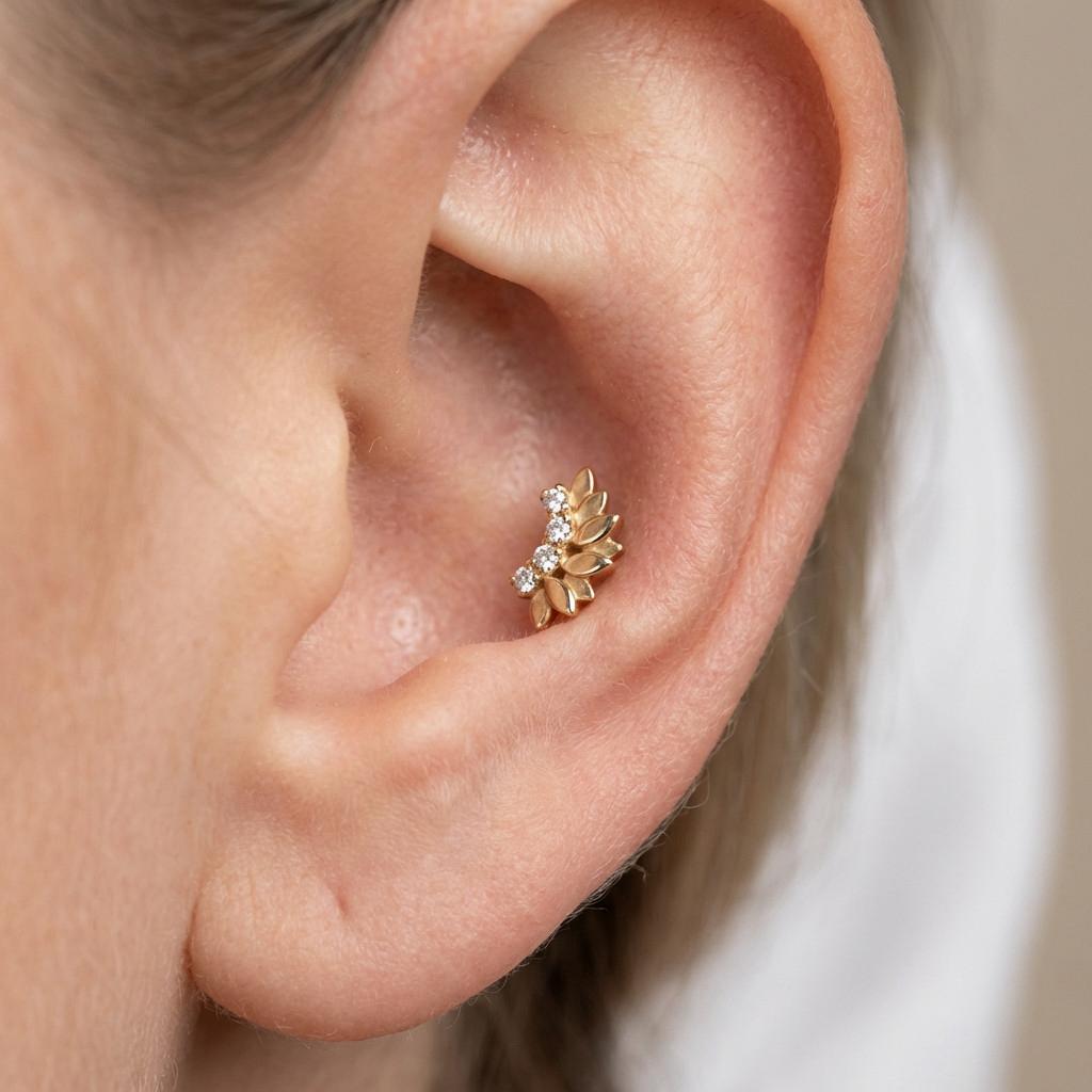 The Yifat Piercing is crafted from 14K yellow or white gold.