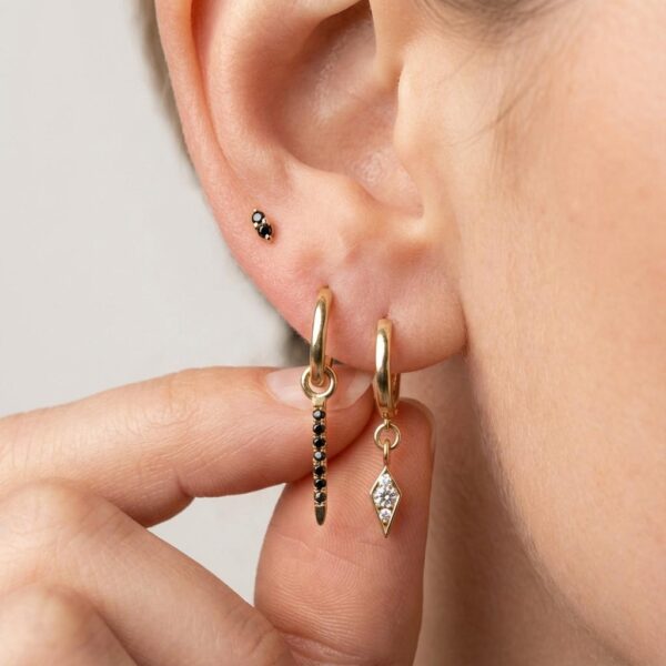 עגילי חישוק מרקיזה מזהב 14 קראט ויהלום שחור