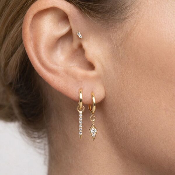 עגיל ריין משולש מזהב 14 קראט ויהלום