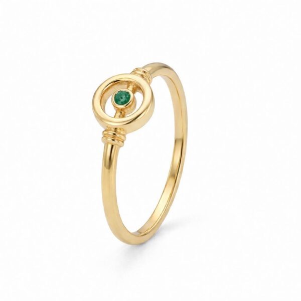 טבעת עיגול מזהב 14 קראט משובצת יהלום/ יהלום שחור/אמרלד