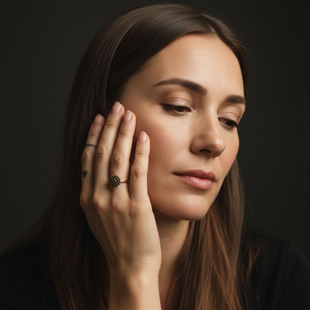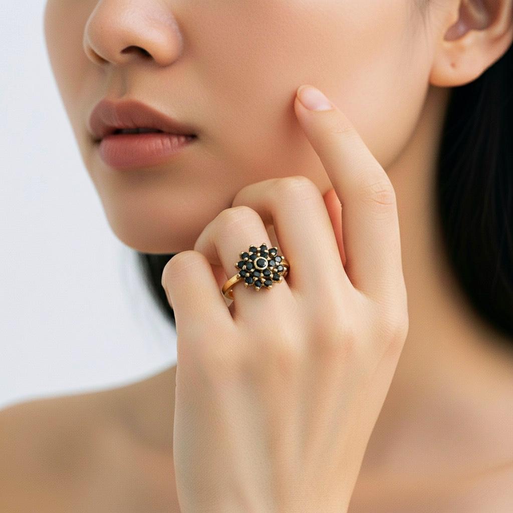 מעוצבת בצורת פרח משובצת 19 יהלומים שחורים
