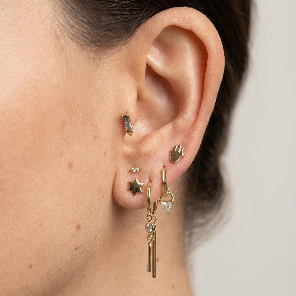 עגיל חמסה צמוד תנוך עשוי זהב צהוב או זהב לבן 14 קראט