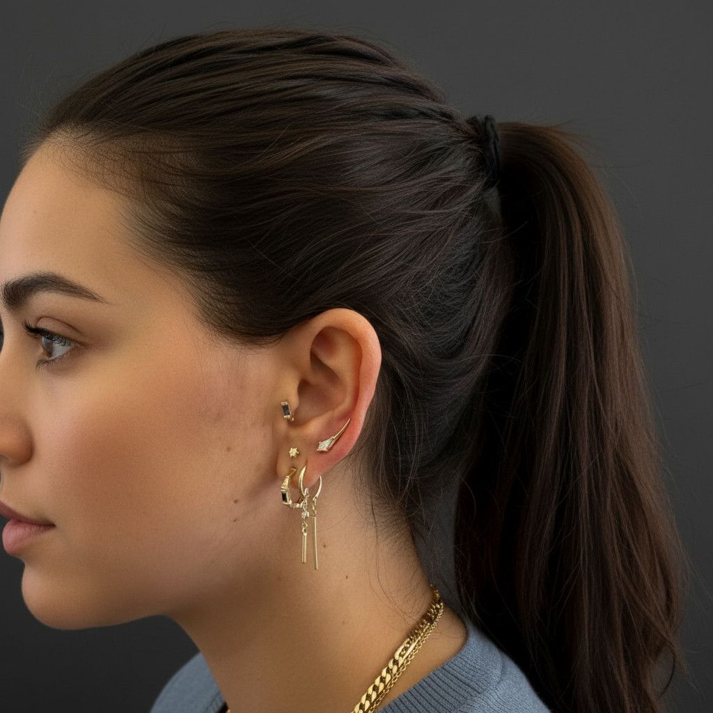 עגיל מטאור עשוי זהב 14 קראט צהוב או לבן