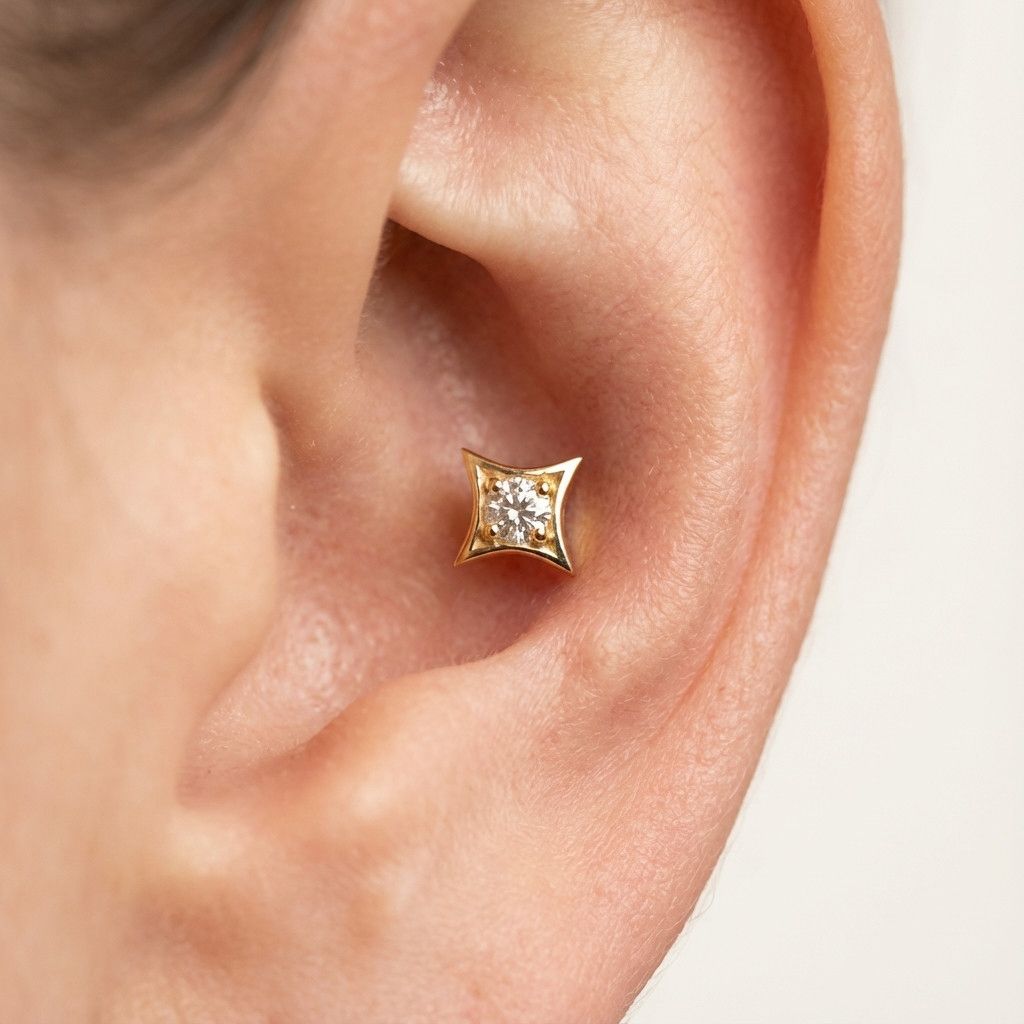 פירסינג מוט מעוין עשוי זהב צהוב או לבן 14 קראט