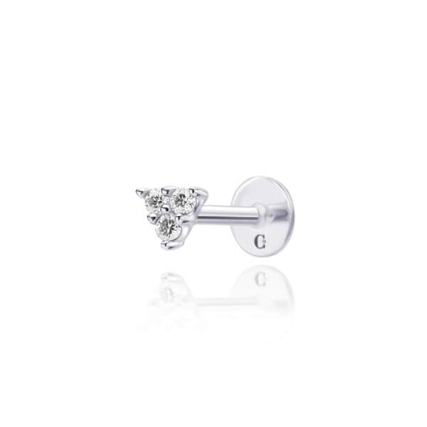 מעוצב בצורת משולש קטן ועדין משובץ שלושה יהלומים שחורים או לבנים
