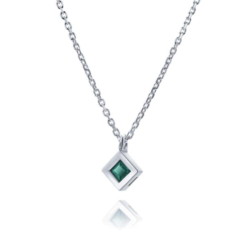 תליון מרובע משובץ אבן אמרלד/ ספיר טבעי