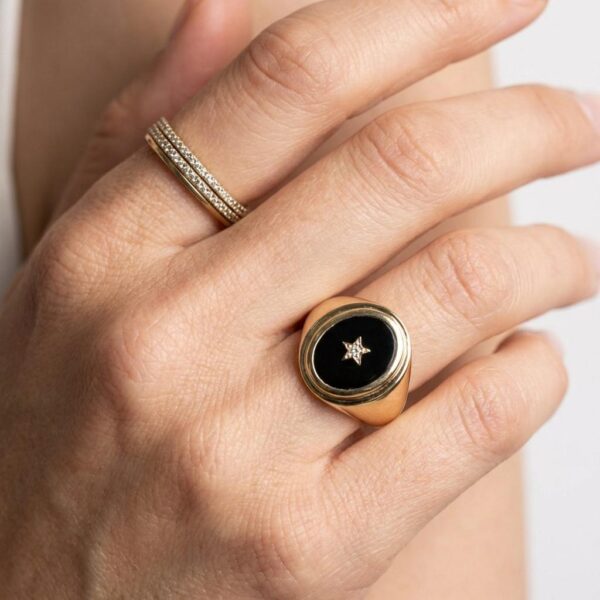 טבעת שהם מזהב 14 קראט ויהלום