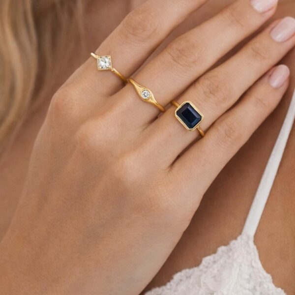 טבעות ליב עשויה זהב 14 קראט בשיבוץ אבני חן